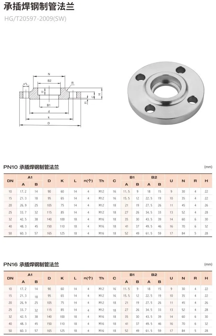 পাইপের প্রান্তটি যখন ফ্ল্যাঞ্জ রিং মইতে প্রবেশ করানো হয় তখন সকেট ওয়েল্ডিং ফ্ল্যাঞ্জটি পাইপ প্রান্তে এবং বাইরের দিকে ঝালাইযুক্ত বোঝায় to ঘাড় সহ এবং ছাড়া দুটি ধরণের রয়েছে। ঘাড় সঙ্গে flange ভাল অনমনীয়তা, ছোট ldালাই বিকৃতি এবং ভাল সীল কর্মক্ষমতা আছে। এটি 1.0 ~ 10.0MPa এর চাপ সহ পরিস্থিতিতে ব্যবহার করা যেতে পারে। পাত্রের জন্য বি ফ্ল্যাঞ্জ হ'ল সকেট ldালাই ফ্ল্যাঞ্জ, যা উচ্চ সিলিং প্রয়োজনীয়তার সাথে উপলক্ষে ব্যবহৃত হয়। ডিজাইনের সময়, সকেট ওয়েল্ডিং ফ্ল্যাঞ্জটি অবিচ্ছেদ্য ফ্ল্যাঞ্জ হিসাবে চেক করা যায়।